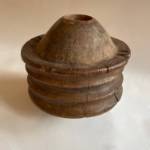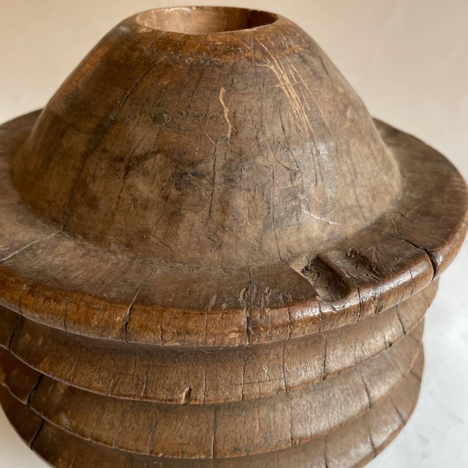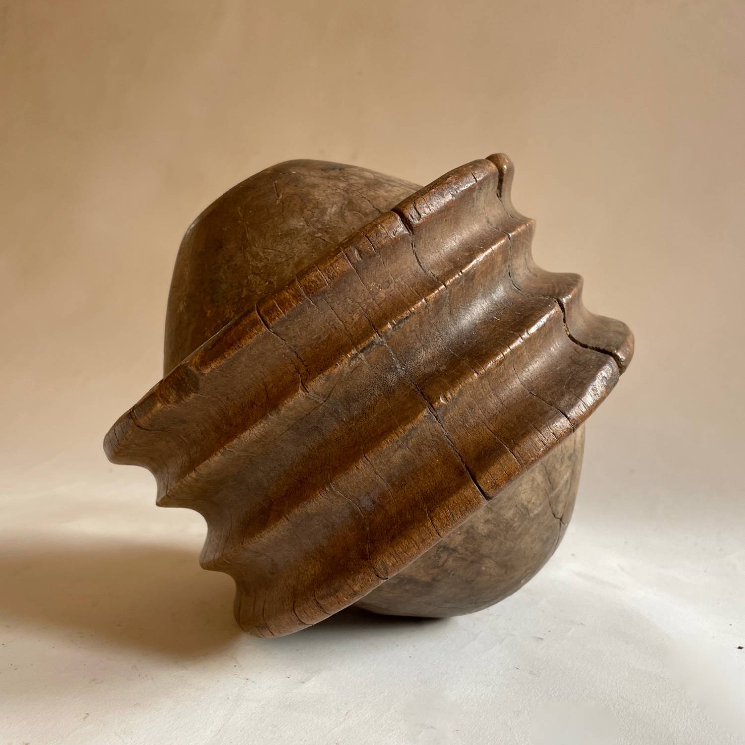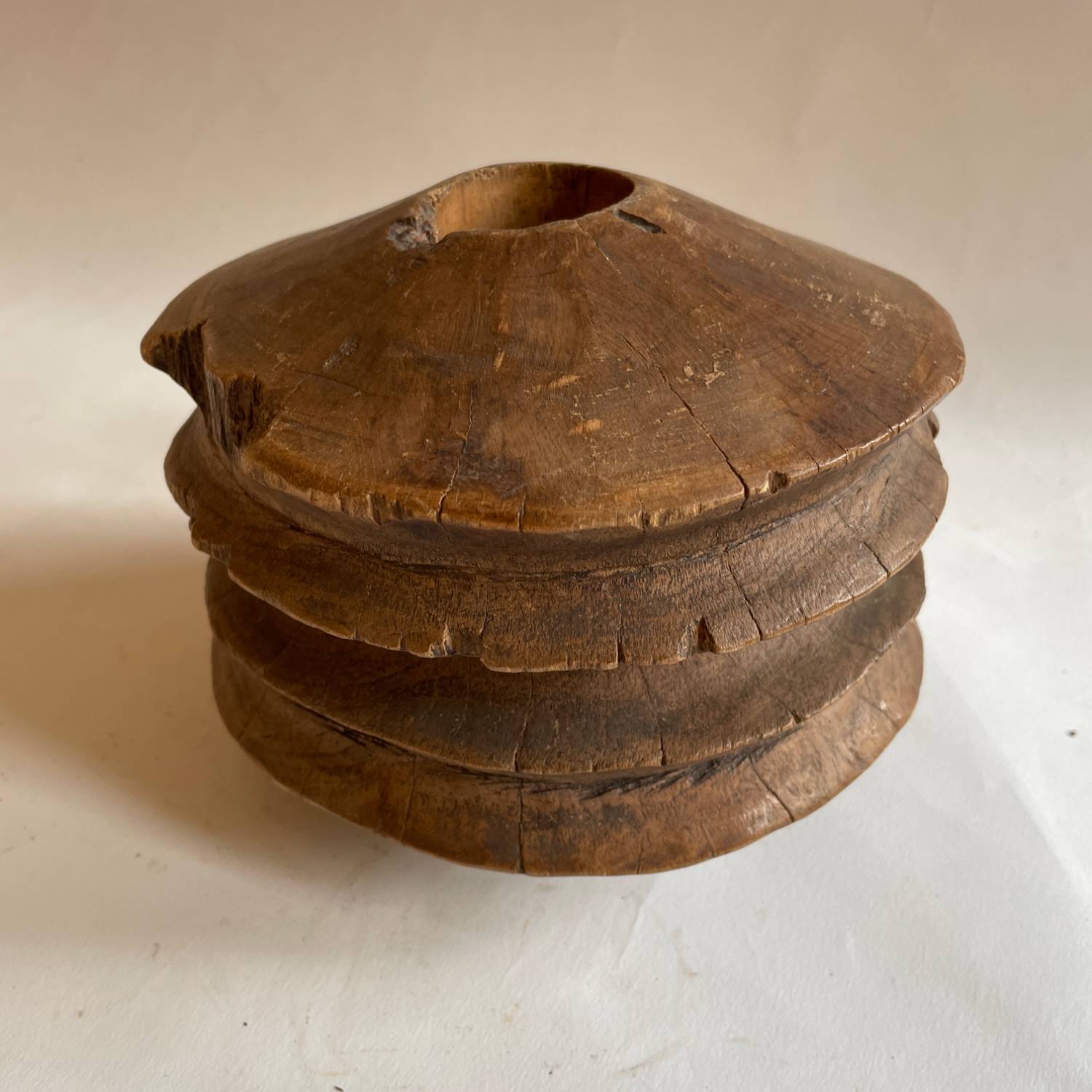 African pulleys. Their look is sculptural but their woking life has left them with a tactile smoothness .